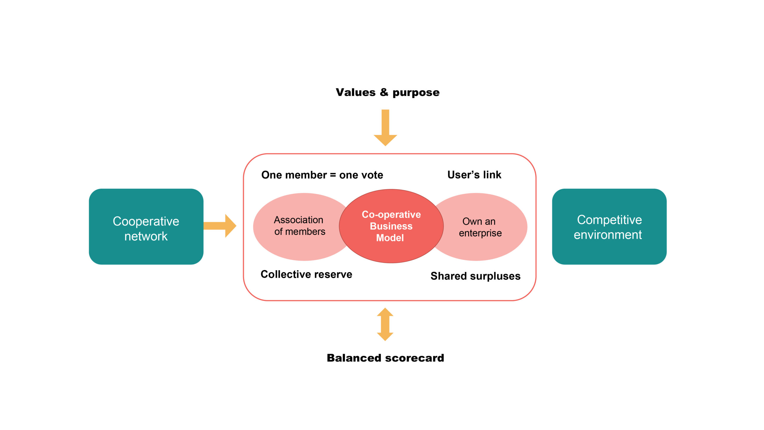 Cooperative equilibrium is also based on the alignment of values and purpose (the ideological core), the cooperative business model, and performance indicators seen in the context of a balanced scorecard.